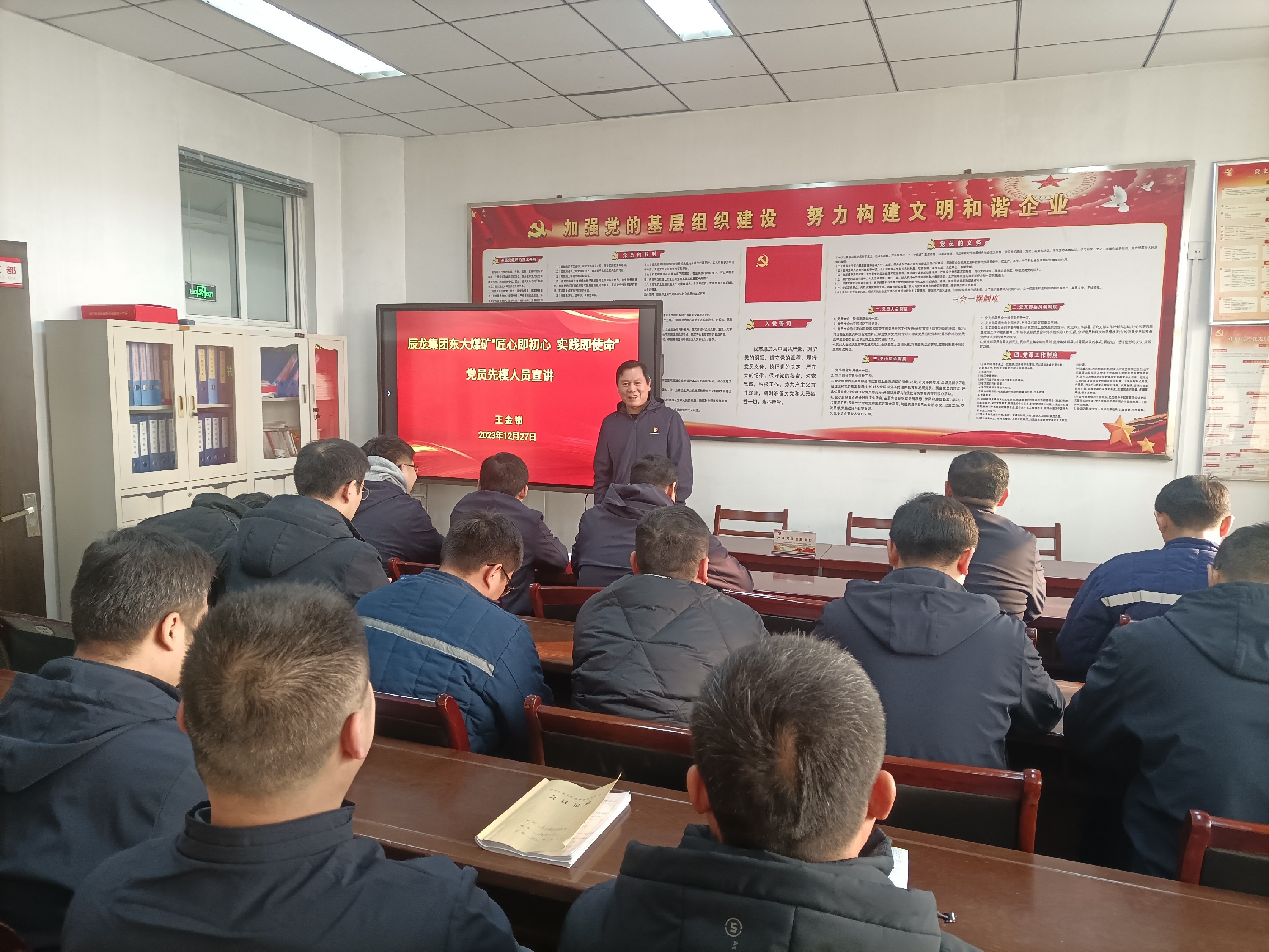 12月27日,辰龍集團(tuán)東大煤礦生產(chǎn)調(diào)度黨支部開展先模黨員宣講活動(dòng)。