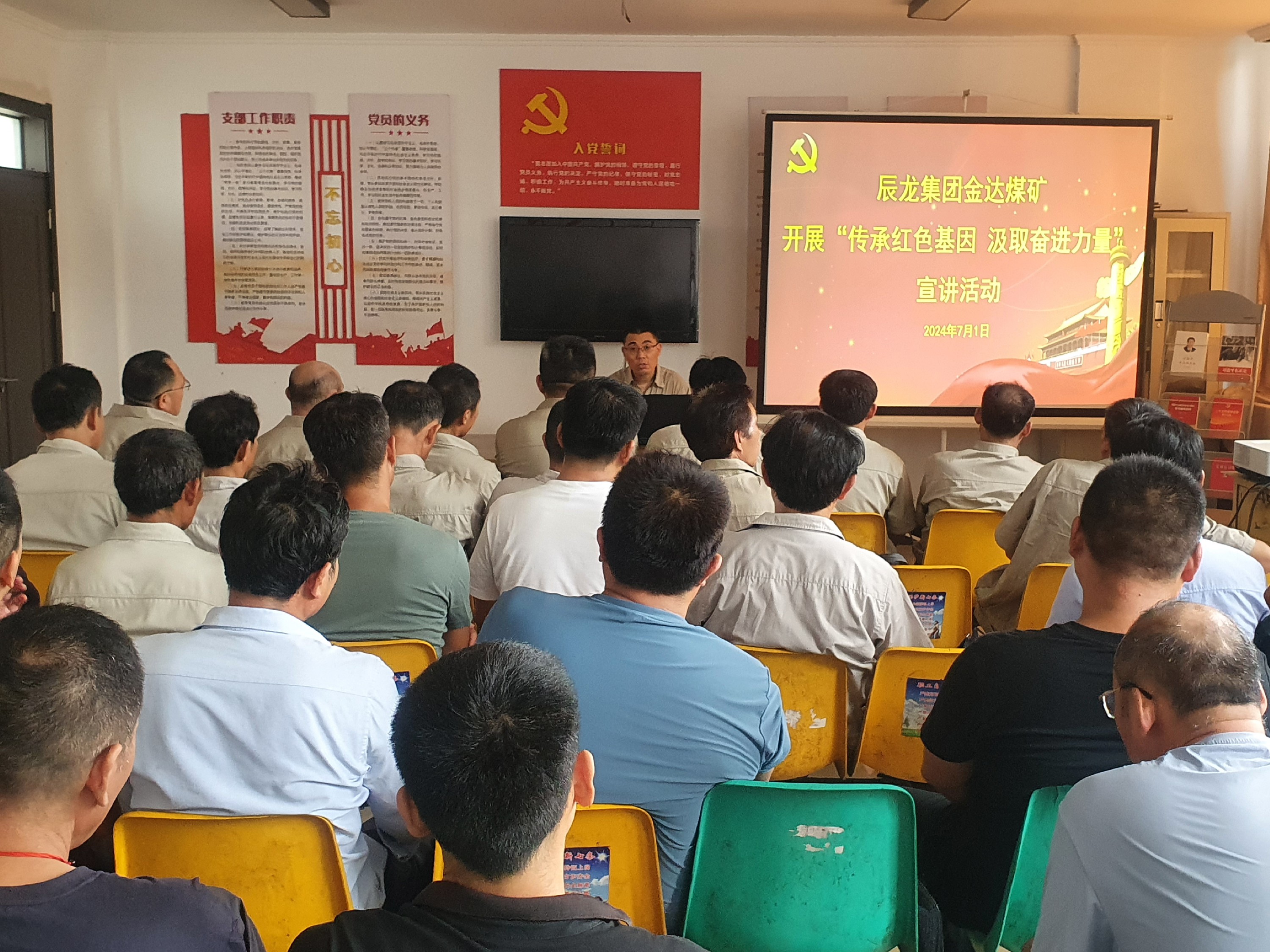 為慶祝中國共產(chǎn)黨成立103周年,進(jìn)一步激勵黨員干部職工堅定理想信念、勇于擔(dān)當(dāng),干實事、有作為。7月1日,金達(dá)煤礦以“傳承紅色基因 汲取奮進(jìn)力量”為主題開展宣講,公司綜掘一線黨員干部職工30余人聆聽了宣講。